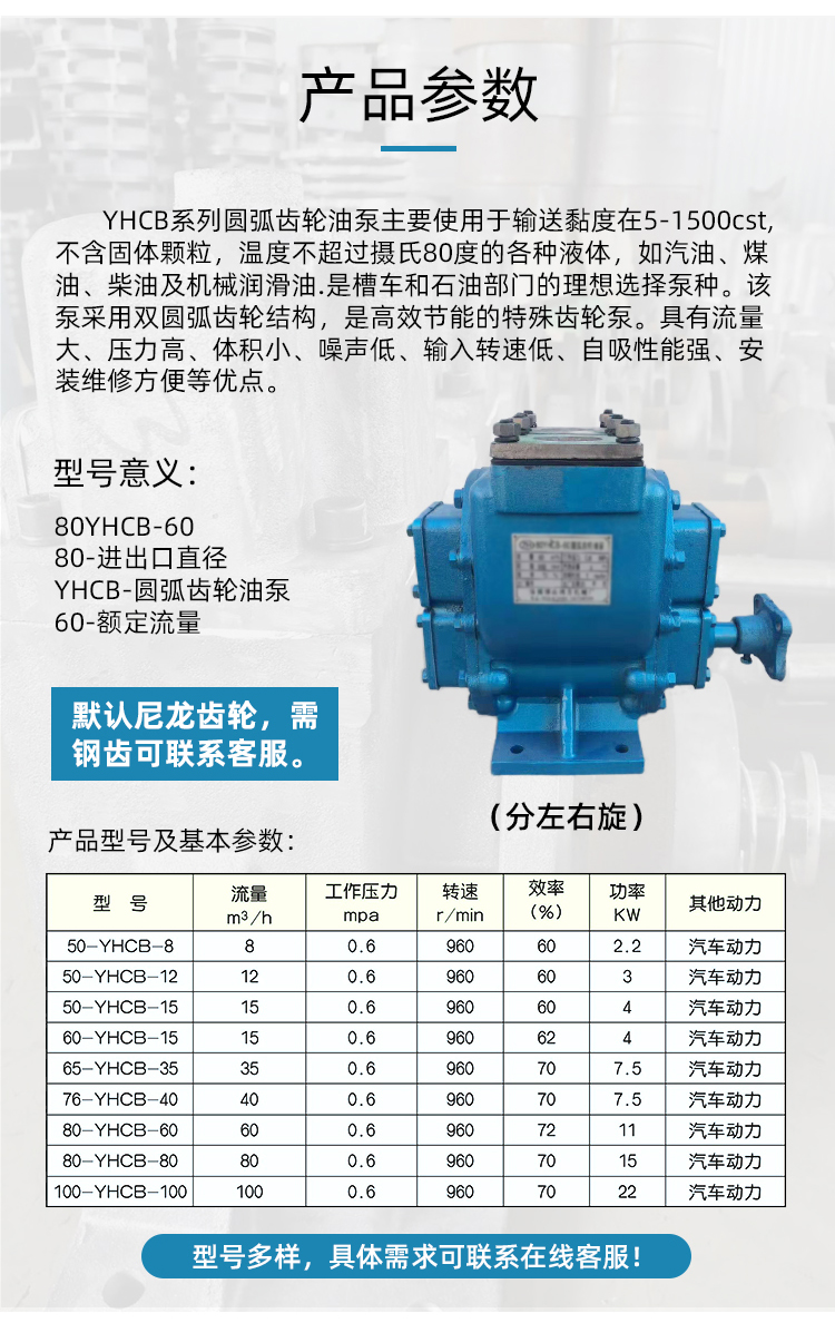 産品概述: YHCB系列(liè)圓弧齒輪油泵是(shì)在圓弧齒輪泵基(ji)礎上,應用國外先(xian)進🌍齒輪齒形新技(ji)術,采用新工藝和(hé)新型齒💋輪材❗料研(yan)制而成,其性能比(bǐ)原來的圓弧齒輪(lún)泵大