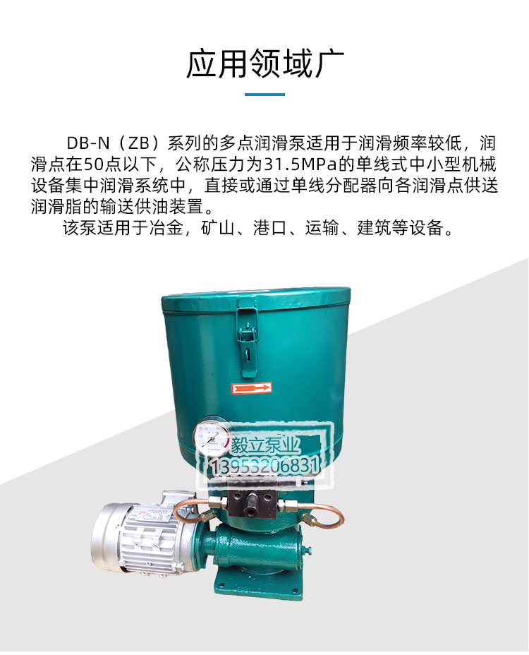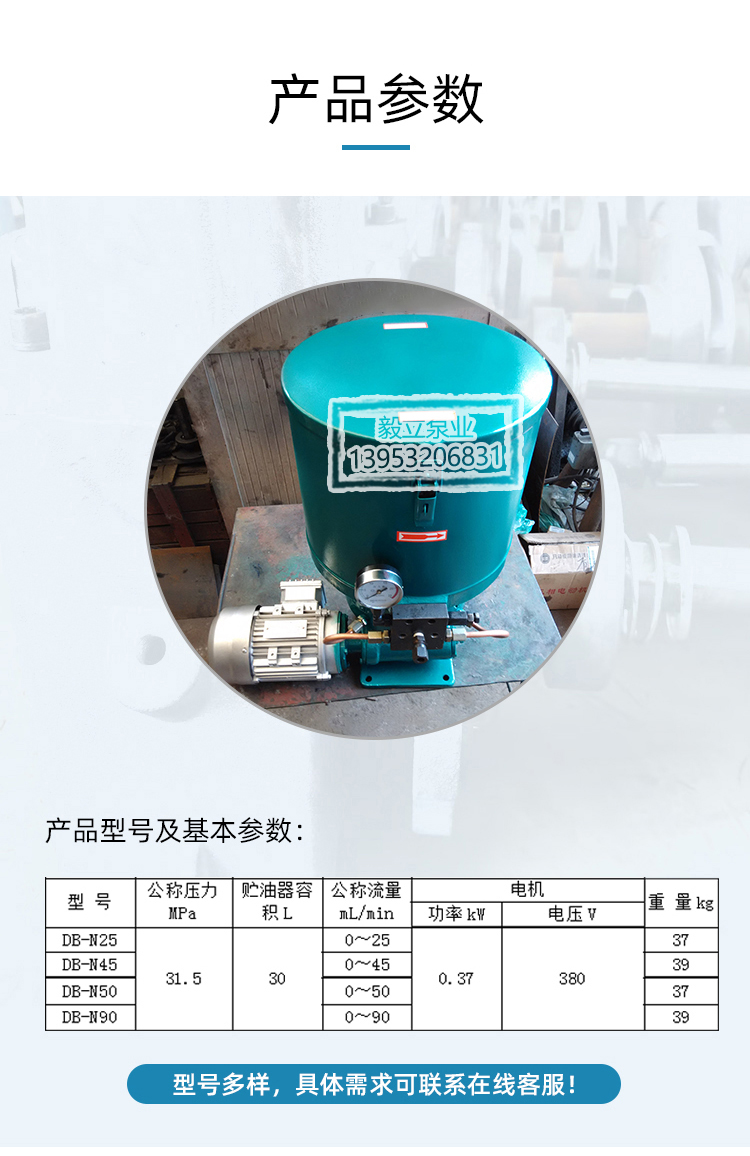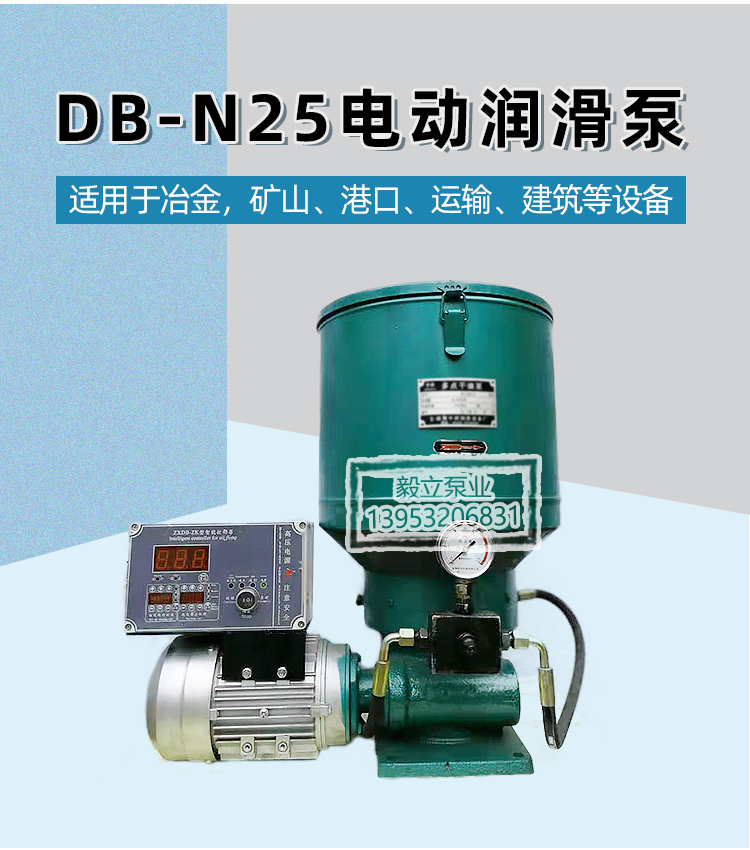 産(chan)品概述: 山東毅立(li)DB-N25 N45電動潤滑黃油泵(beng)單線幹油打黃油(you)泵淄博 黃油機